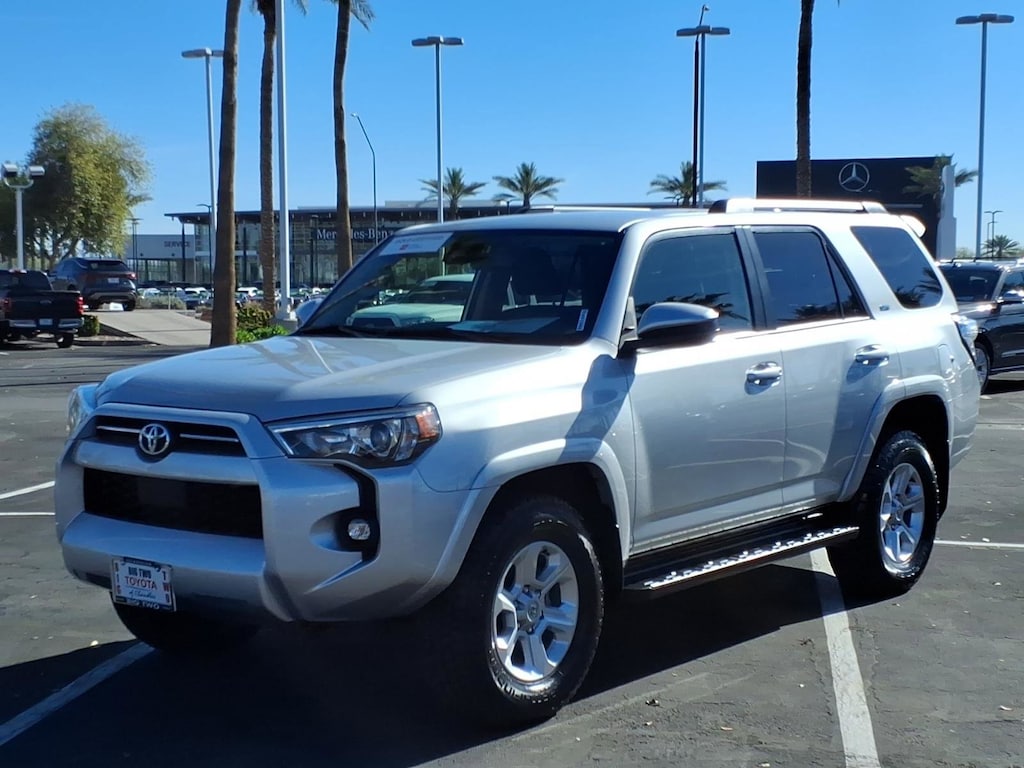 This vehicle is a 2023 Toyota 4Runner SR5, certified pre-owned and with 50,942 miles. It has a 4x4 4.0 liter 6 cylinder engine with sequential port fuel injection and a crash test rating of 4 out of 5 stars. Vehicle features include blind spot sensor, hill start assist, and part time four wheel drive. This car is sure to turn heads on the road with its sleek design and modern features. Contact Details: Big Two Toyota, 1250 S. Gilbert Road, Chandler, AZ, 85286, sales@bigtwo.com, 4808986000.