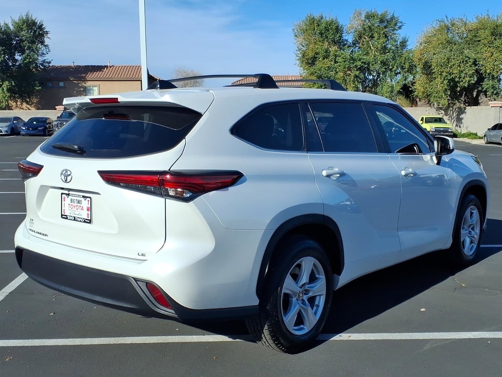 This 2023 Toyota Highlander LE is a certified pre-owned vehicle with low mileage of 23,158 miles. It is equipped with a 2.4 liter Turbo I4 265hp 310 lb-ft engine, direct injection, and FWD for maximum performance. The vehicle also has a crash test rating of 5 out of 5 stars and features such as touch screen display, Bluetooth audio connection, blind spot sensor, hill start assist, and Bluetooth phone connectivity. With its impressive fuel economy of 22 mpg in the city and 29 mpg on the highway, this car is sure to be a reliable and efficient option for anyone looking for a reliable ride. Contact Details: Big Two Toyota, 1250 S. Gilbert Road, Chandler, AZ, 85286, sales@bigtwo.com, 4808986000.