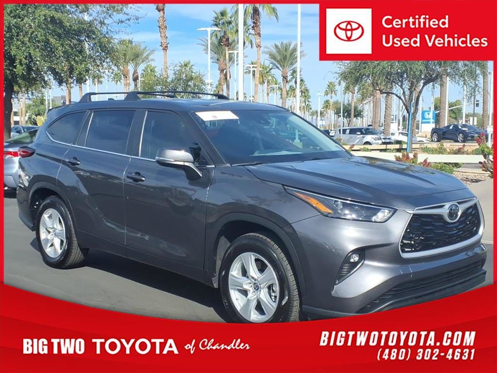 This vehicle is a 2023 Toyota Highlander LE, a certified pre-owned car with 40,993 miles. It has a 2.4 liter Turbo I4 265hp 310 lb-ft engine, direct injection, and FWD capabilities. It has an impressive fuel economy of 22 mpg in the city and 29 mpg on the highway, making it an efficient choice for any driver. It also has a crash test rating of 5 out of 5 stars, making it a safe option for anyone looking to purchase a car. Additionally, this car comes with a variety of features such as touch screen display, Bluetooth audio connection, blind spot sensor, and hill start assist. All of these features come together to make this car an excellent choice for anyone looking for a reliable and safe ride. Contact Details: Big Two Toyota, 1250 S. Gilbert Road, Chandler, AZ, 85286, sales@bigtwo.com, 4808986000.