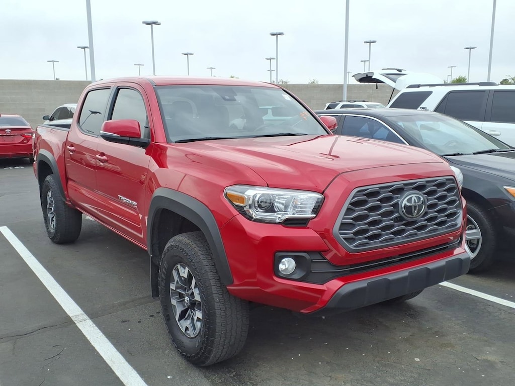 The 2023 Toyota Tacoma TRD Off-Road is a certified pre-owned vehicle with 35,372 miles on it. It features a 3.5 liter V6 278hp 265 lb-ft engine with direct injection, and has a fuel economy of 18 mpg in the city and 22 mpg on the highway. This vehicle also comes with a variety of features such as a touch screen display, Bluetooth audio connection, blind spot sensor, hill start assist, part time four wheel drive, Apple Carplay ready, navigation system with voice recognition, and Bluetooth phone connectivity. With its advanced technology and powerful performance, this car is sure to make any driver happy. Contact Details: Big Two Toyota, 1250 S. Gilbert Road, Chandler, AZ, 85286, sales@bigtwo.com, 4808986000.