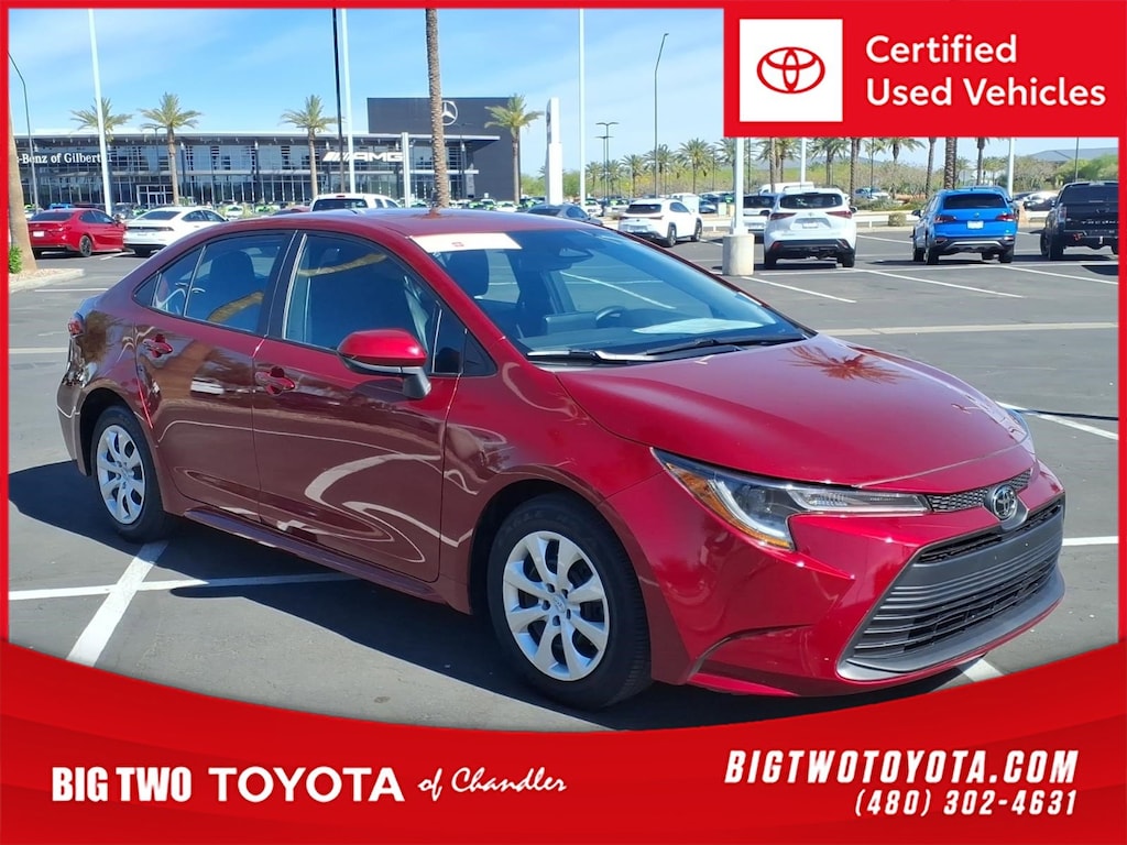 This 2024 Toyota Corolla LE is a certified pre-owned vehicle that has driven 30,805 miles. It is powered by a 2.0 liter 4 cylinder engine with fuel injection and features a front wheel drive system. The car has received a crash test rating of 5 out of 5 stars, making it one of the safest cars on the road today. Additionally, it includes hill start assist as a standard feature, making driving this car even more enjoyable. This car is truly one of a kind and will surely turn heads on the road. Contact Details: Big Two Toyota, 1250 S. Gilbert Road, Chandler, AZ, 85286, sales@bigtwo.com, 4808986000.