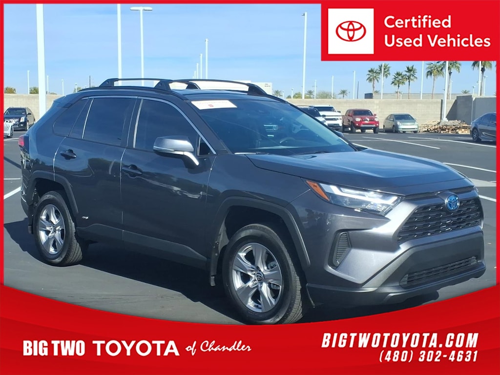 The 2024 Toyota RAV4 Hybrid XLE is a certified pre-owned vehicle that has driven 27,444 miles. It is equipped with an all wheel drive system and a 2.5 liter 4 cylinder engine that produces 185 horsepower. The vehicle has received a 5 out of 5 star crash test rating and features such as blind spot sensor, hill start assist, and on demand four wheel drive. This car is sure to make any driver feel safe and secure on the road. Contact Details: Big Two Toyota, 1250 S. Gilbert Road, Chandler, AZ, 85286, sales@bigtwo.com, 4808986000.