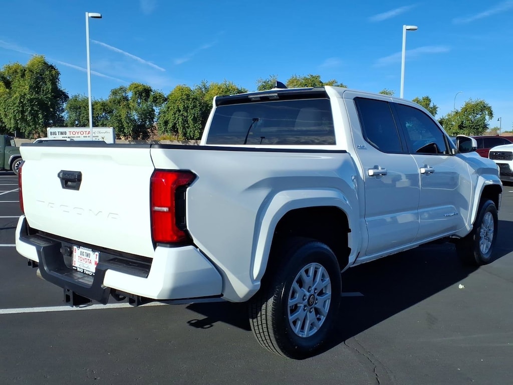 This vehicle is a 2024 Toyota Tacoma SR5 Double Cab, certified pre-owned and with 15,589 miles. It is equipped with a 2.4 liter 4 cylinder engine, turbocharged, and 4x2 capabilities. The vehicle also features blind spot sensor and hill start assist, making it an excellent choice for anyone looking for a reliable and safe car. With its low mileage and high performance features, this car is sure to turn heads on the road. Contact Details: Big Two Toyota, 1250 S. Gilbert Road, Chandler, AZ, 85286, sales@bigtwo.com, 4808986000.