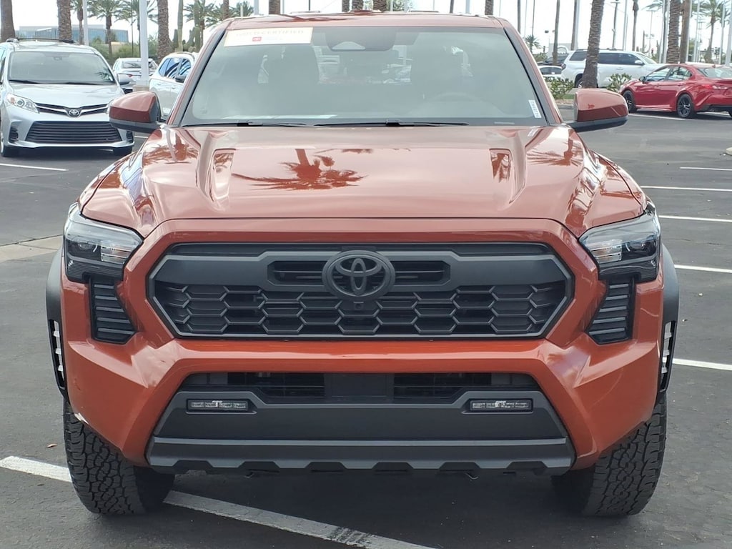 This vehicle is a 2025 Toyota Tacoma TRD Sport, certified pre-owned with 5,978 miles. It has a 4x4, 2.4 liter Turbo I4 278hp 317 lb-ft engine, direct injection, and a crash test rating of 4 out of 5 stars. It also comes with many features such as touch screen display, Bluetooth audio connection, blind spot sensor, hill start assist, part time four wheel drive, Bluetooth phone connectivity, and more. This car is truly one of a kind and will surely turn heads wherever it goes! Contact Details: Big Two Toyota, 1250 S. Gilbert Road, Chandler, AZ, 85286, sales@bigtwo.com, 4808986000.