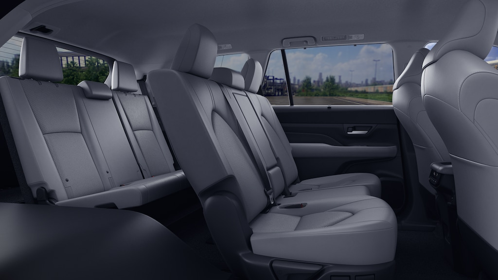 • 7-passenger seating with second-row fold-down captain's chairs and fold-down inboard armrests, adjustable headrests and two cup holders mounted on the floor; and 60/40 split, fold-down third-row seats with sliding headrests and recline function.