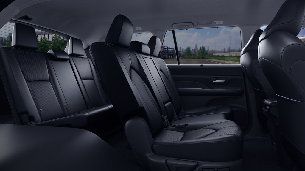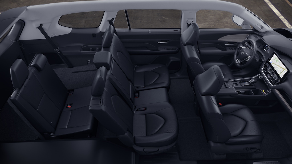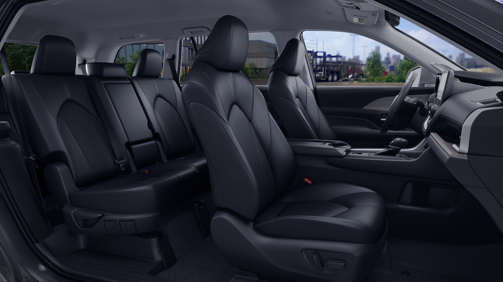 • 7-passenger seating with second-row fold-down captain's chairs and fold-down inboard armrests, adjustable headrests and two cup holders mounted on the floor; and 60/40 split, fold-down third-row seats with sliding headrests and recline function.