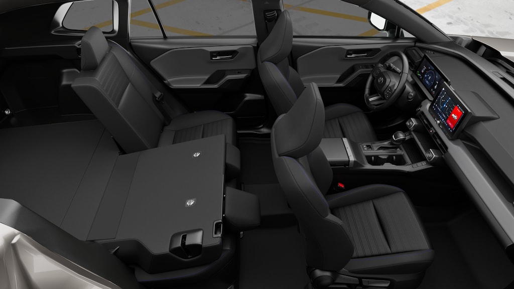 - 60/40 split reclining fold-flat rear seat with center armrest and cup holders.