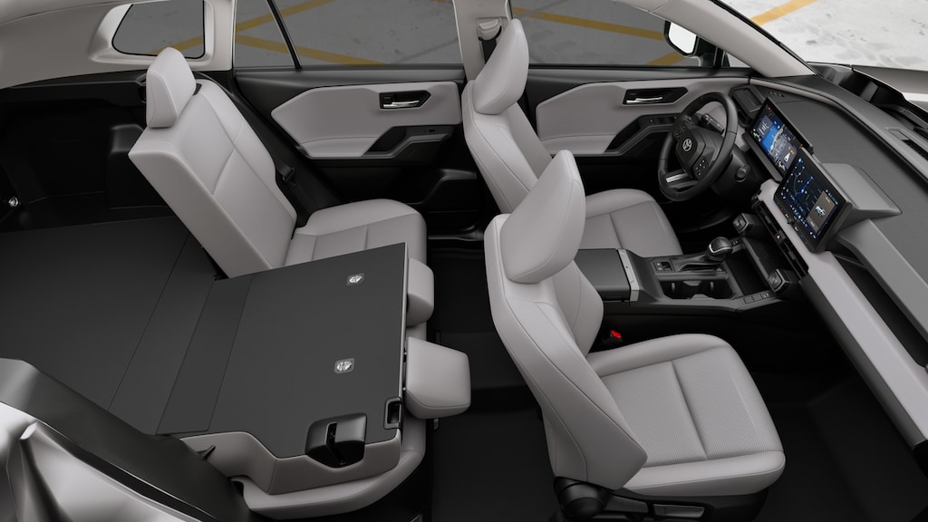 • 60/40 split reclining fold-flat rear seat with center armrest and cup holders.