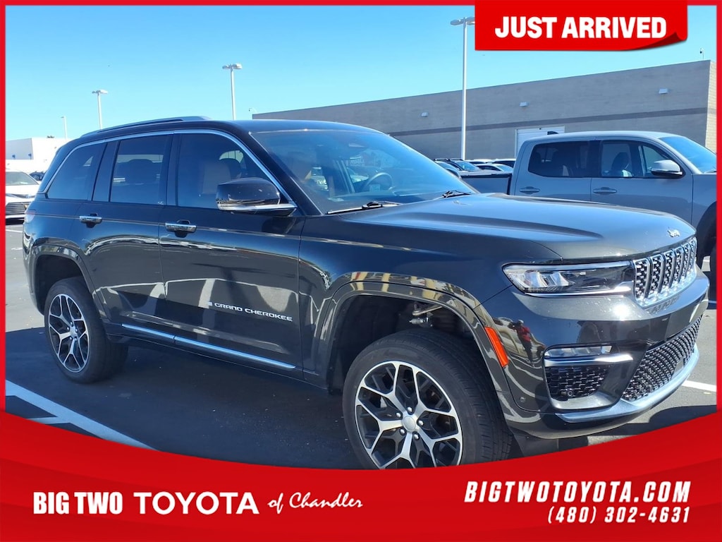 This 2023 Jeep Grand Cherokee Summit Vehicle is a sight to behold. With its low mileage of 28,992 miles, this 4x4 3.6 liter Pentastar V6 293hp 260 lb-ft engine, direct injection Vehicle is sure to turn heads. It also comes with a host of features such as touch screen display, Bluetooth audio connection, blind spot sensor, hill start assist, on demand four wheel drive, Apple Carplay ready, navigation system with voice recognition, navigation with touch screen display, Bluetooth phone connectivity, and leather seats. With its fuel economy in city at 19 mpg and fuel economy on highway at 26 mpg, this Vehicle is sure to keep you on the road for many miles to come. Contact Details: Big Two Toyota, 1250 S. Gilbert Road, Chandler, AZ, 85286, sales@bigtwo.com, 4808986000.