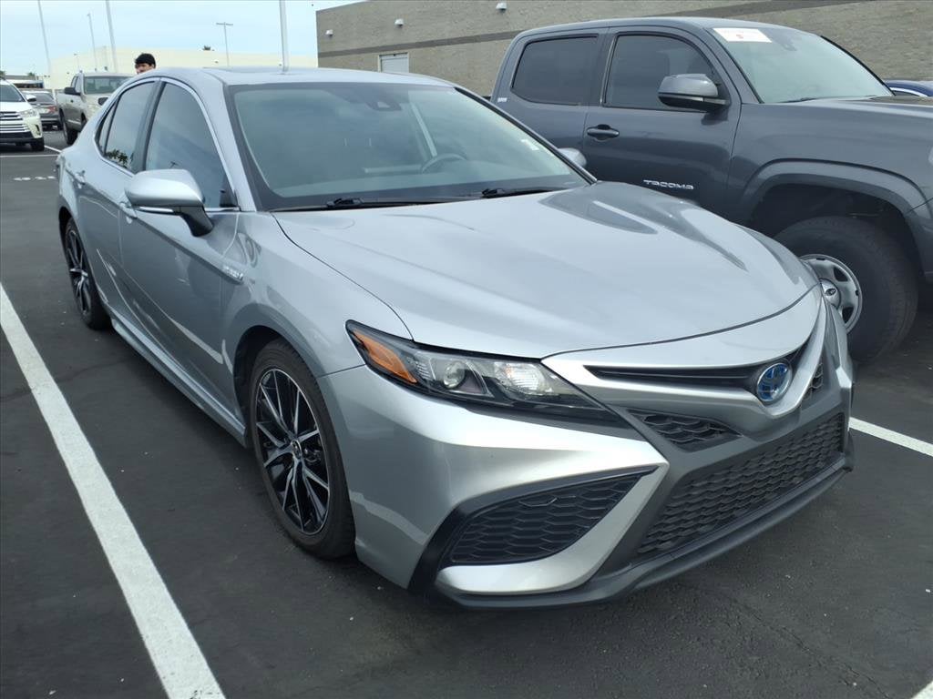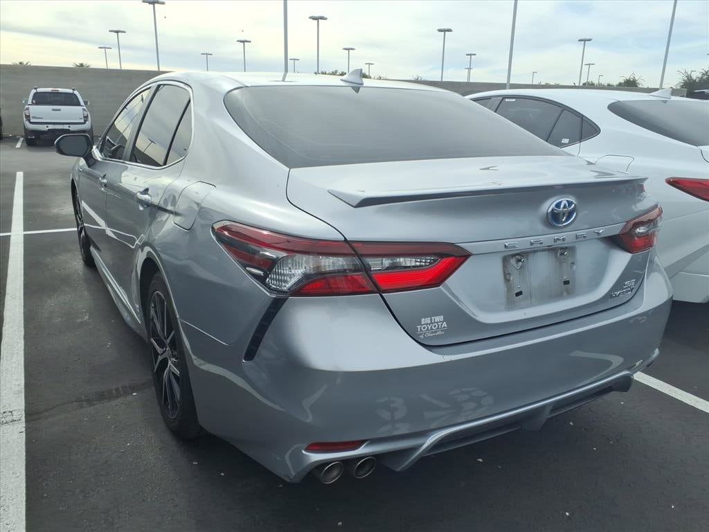 This vehicle is a 2021 Toyota Camry Hybrid SE, certified pre-owned, and with 57,779 miles. It has a FWD 2.5 liter Hybrid I4 208hp direct injection engine and a crash test rating of 5 out of 5 stars. It also comes equipped with a touch screen display, Bluetooth audio connection, hill start assist, Apple Carplay ready, Bluetooth phone connectivity, and leather seats. This car is truly one of a kind and will surely turn heads wherever it goes! Contact Details: Big Two Toyota, 1250 S. Gilbert Road, Chandler, AZ, 85286, sales@bigtwo.com, 4808986000.