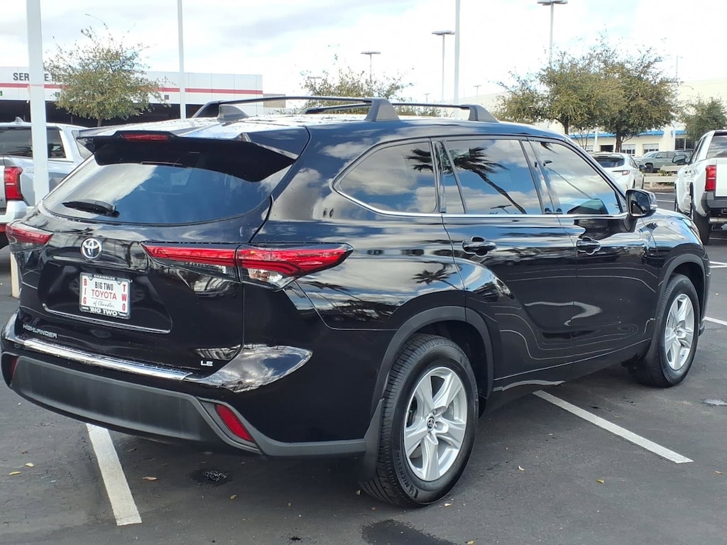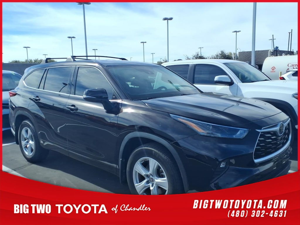 This vehicle is a 2022 Toyota Highlander LE with a 3.5 liter V6 295hp 263 lb-ft direct injection engine and FWD. It has driven 105,460 miles and has a crash test rating of 5 out of 5 stars. It has many features including a touch screen display, Bluetooth audio connection, blind spot sensor, hill start assist, Apple Carplay ready, and Bluetooth phone connectivity. This car is fuel efficient with 20 mpg in the city and 28 mpg on the highway. It is also very safe with its 5 out of 5 star crash test rating. This car is sure to turn heads wherever it goes! Contact Details: Big Two Toyota, 1250 S. Gilbert Road, Chandler, AZ, 85286, sales@bigtwo.com, 4808986000.