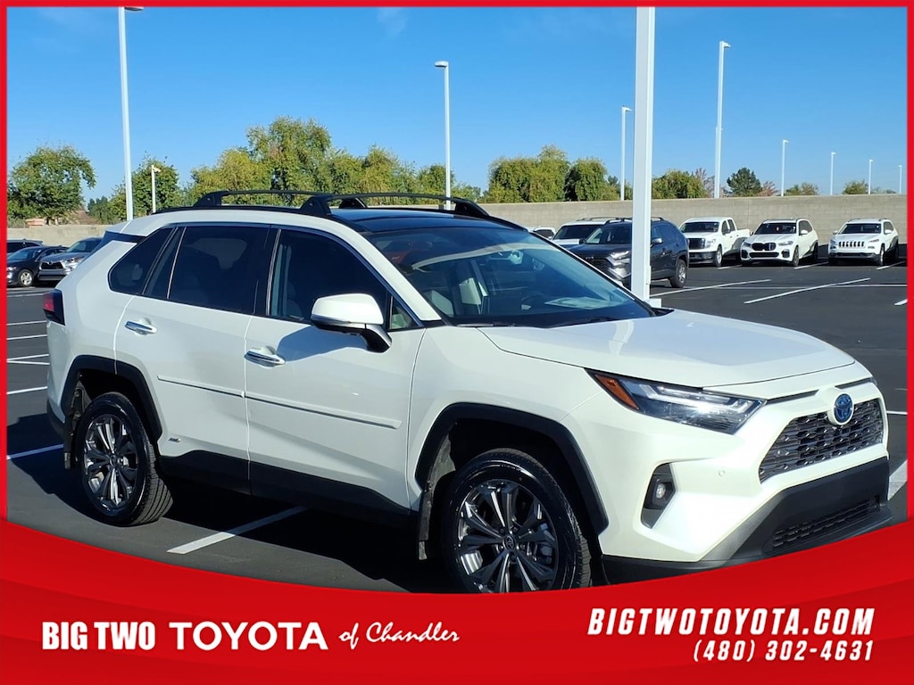 This vehicle is a 2022 Toyota RAV4 Hybrid Limited, an all-wheel drive, 2.5 liter Hybrid I4 219hp engine, direct injection, with a crash test rating of 5 out of 5 stars. It has been driven 69,131 miles and features include touch screen display, Bluetooth audio connection, blind spot sensor, hill start assist, on demand four wheel drive, Apple Carplay ready, Bluetooth phone connectivity, leather seats. This car is truly a marvel of modern engineering and design. Contact Details: Big Two Toyota, 1250 S. Gilbert Road, Chandler, AZ, 85286, sales@bigtwo.com, 4808986000.