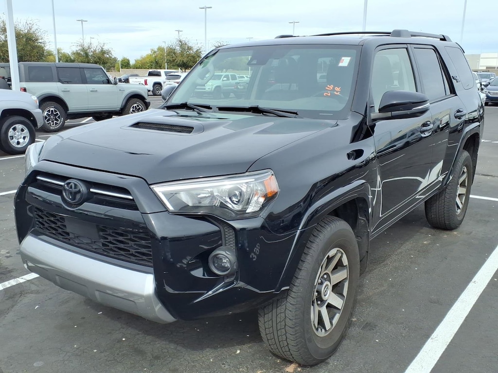 This vehicle is a 2023 Toyota 4Runner TRD Off-Road Premium, certified pre-owned and with 32,747 miles. It has a 4.0 liter V6 270hp 278 lb-ft engine with sequential multiport fuel injection, and a fuel economy of 16 mpg in the city and 19 mpg on the highway. It also has a crash test rating of 4 out of 5 stars, and features such as touch screen display, Bluetooth audio connection, blind spot sensor, hill start assist, part time four wheel drive, Apple Carplay ready, navigation system with voice recognition, and leather seats for added comfort. This car is sure to turn heads wherever it goes! Contact Details: Big Two Toyota, 1250 S. Gilbert Road, Chandler, AZ, 85286, sales@bigtwo.com, 4808986000.