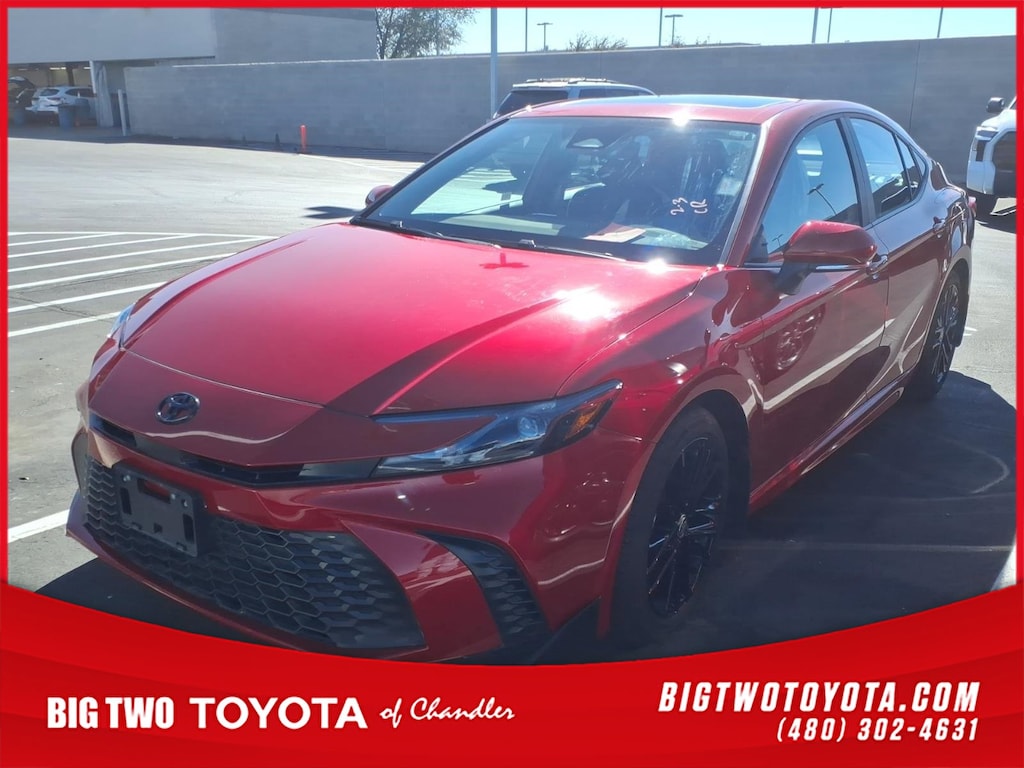 This vehicle is a 2025 Toyota Camry LE, with a direct injection 2.5 liter Hybrid I4 225hp engine and FWD. It has driven 18,407 miles and has a crash test rating of 5 out of 5 stars. Vehicle features include a touch screen display, Bluetooth audio connection, blind spot sensor, hill start assist, navigation with touch screen display, and Bluetooth phone connectivity. This car is truly state-of-the-art and is sure to make any driver feel safe and secure on the road. Contact Details: Big Two Toyota, 1250 S. Gilbert Road, Chandler, AZ, 85286, sales@bigtwo.com, 4808986000.