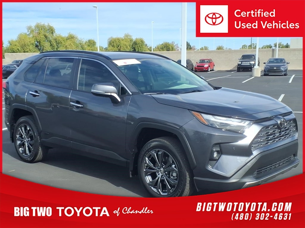 This vehicle is a 2025 Toyota RAV4 Hybrid Limited, certified pre-owned and with low mileage of 8,991 miles. It has all wheel drive, a 2.5 liter Hybrid I4 219hp engine, direct injection, and features such as touch screen display, Bluetooth audio connection, blind spot sensor, hill start assist, on demand four wheel drive, navigation system with voice recognition, and leather seats. This car is truly a modern marvel and is sure to turn heads wherever it goes. Contact Details: Big Two Toyota, 1250 S. Gilbert Road, Chandler, AZ, 85286, sales@bigtwo.com, 4808986000.